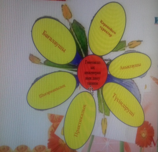 1-қадам Қарапайым сұрақтар сабақтың тақырыбы мен мақсатын анықтау. Тақырып, проблема бойынша білімнің көкейкестілігі 2-Анықтағыш сұрақтар оқушылырды үй тобына бөлу. 3-Түсіндіруші сұрақтар топ ішінде әр оқушыға жеке нөмір беріледі 1,2,3,4 деген өз нөмерлерін алады Берілген уақытта, барлығы орындарынан тұрады, 1- нөмірлер сағат тілінің жүрісімен көрші топқа жиналады, 2- нөмірлер, 3- нөмірлер және 4 нөмірлер, әркім өз тобында жасалынған жұмысты өз қонақтарына жеткізеді.Постер қорғау |