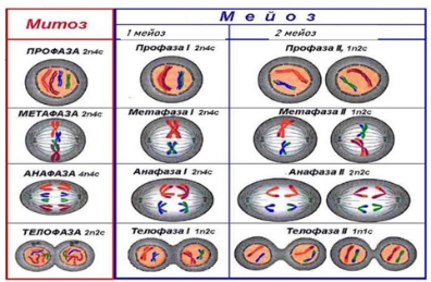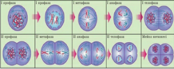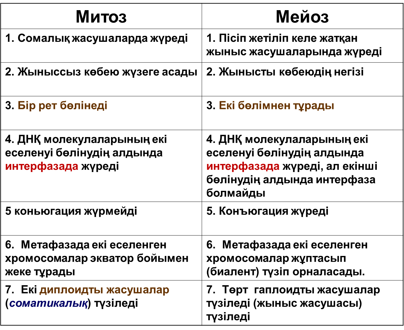 9.2.2.3 - мейоз кезеңдерін сипаттау; 9.2.2.4 - митоз және мейоз үдерістерін салыстыру |