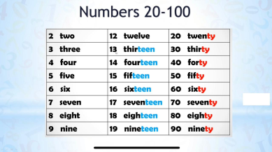 The teacher explain the new topic and teach the children to distinguish between the endings -teen and –ty |