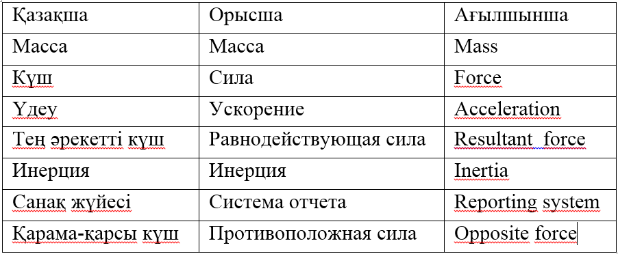 9.2.2.2 Ньютонның екінші заңын тұжырымдау және оны есептер шығаруда қолдану. |