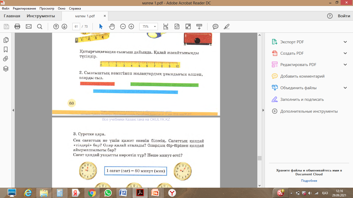 Бұл-ұзындықты өлшейтін құрал «Сызғыш».Миллиметр,сантиметр,метр,километр. Бұл-уақытты өлшейтін құрал «Сағат». Секунд,минут,сағат.