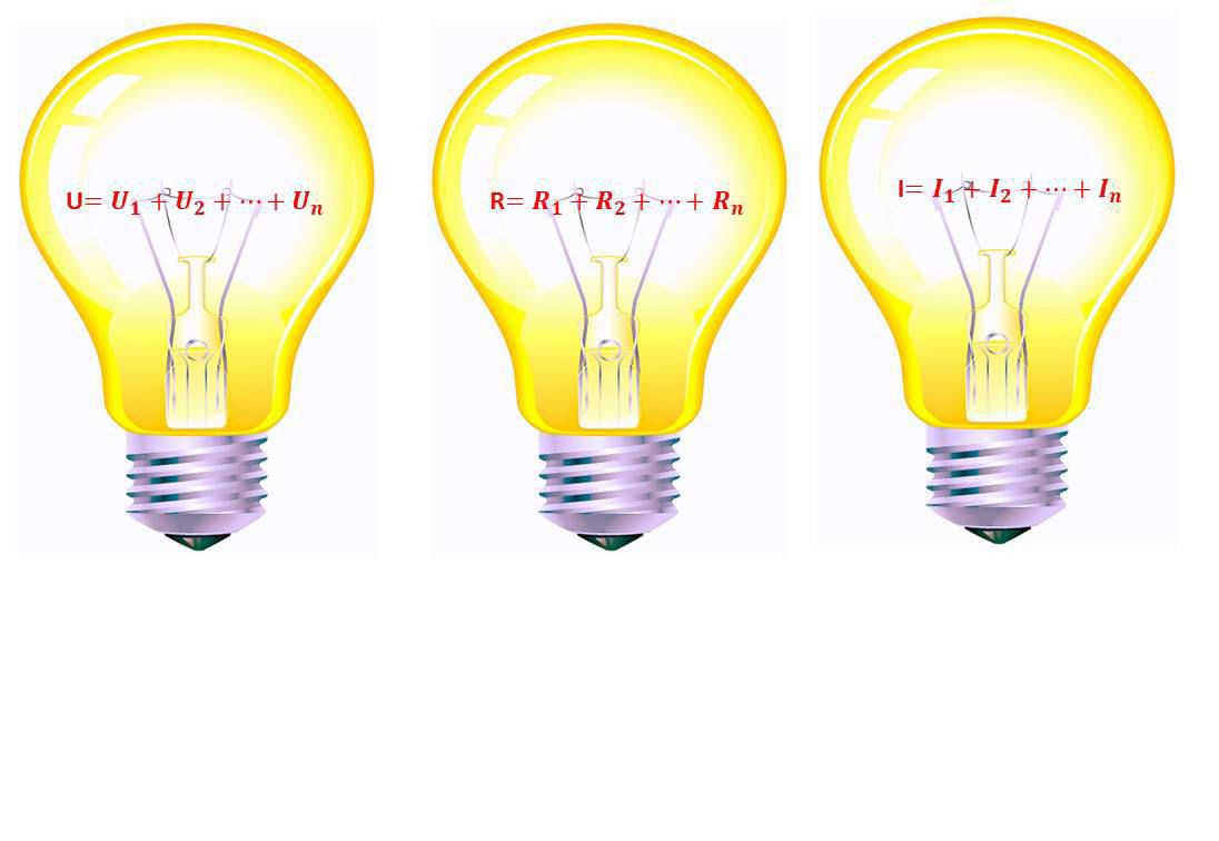 I=I1=I2= I3. U=U1+U2+U3