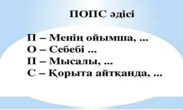 Тыңдалымалды тапсырмасы. Жеке жұмыс. 1-тапсырма. Тыңдалым. 2-тапсырма. Бейнежазба Тыңдалымнан кейінгі тапсырма. Айтылым. 3-тапсырма. Сұрақтарға жауап береді. Мәтін мазмұнын түсініп тыңда Жұптық жұмыс. 4-тапсырма. Тірек сөздерді қолданып, ПОПС формуласын толықтырады |