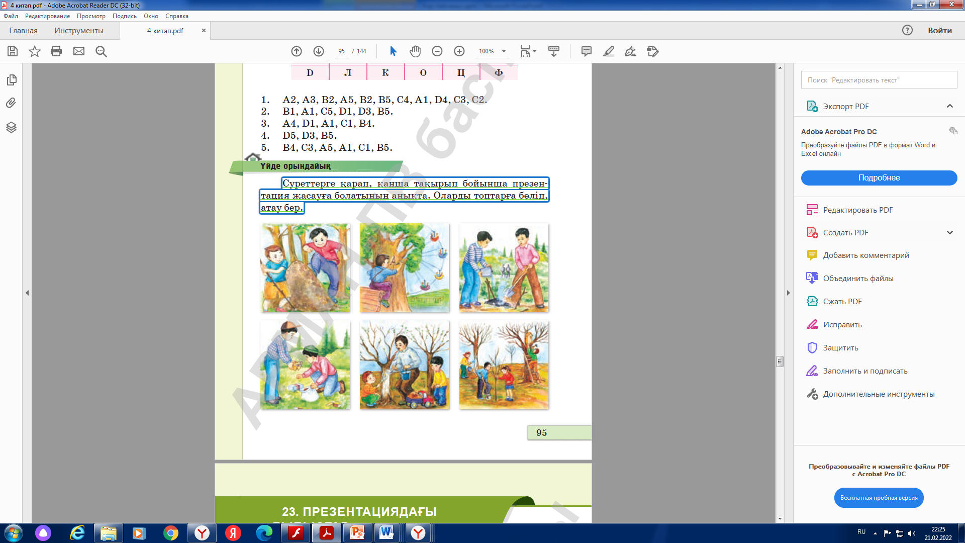 Барлық оқушылар сәйкестендіру тапсырмасын орындайды