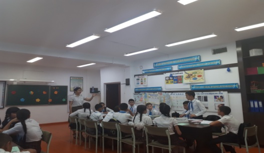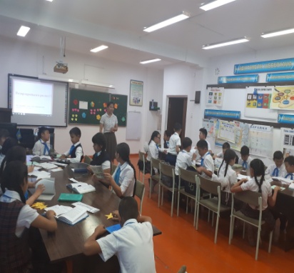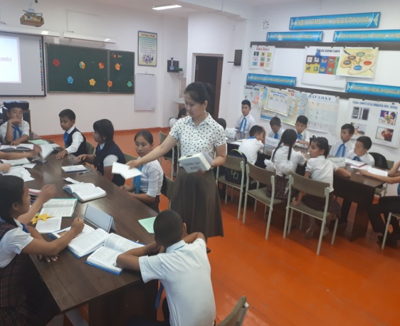 Жаңа сабақ: Тоқсандық қайталау. «Кездескен бейне» әдісі арқылы авторларға шолу жасау. Әр топ өз тобы атауының авторларын қорғайды. Олар туралы мәліметтер айтады. 1 топ: «Шыңырау» 2 топ: «Бір атаның балалары» 3 топ: «Ата үміті» 4 топ: «Манас жыры» 5топ: «Мексика ұлы» Әр топқа берілген шығарм абойынша «Зымыран» сұрақтарына жауап береді. Әр топқа өз атауы бойынша шығама ішінен сұрақтар қойылады. 10-50 деңгейлік сұрақтар дайындалған. Жауап берген оқушыға бал қосылады. «Алғыс хат жәшігі» арқылы авторларға алғыс жазу. Әр топ өзінің авторларына алғысын жазады. Және шығарманың қай тұсы ұнағанын, қандай кейіпкерден қандай қасиетін ұнатып, өзіне алған тәрбиелік тұсын жазады.