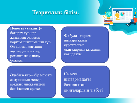 Т/Ж1 Әдеби шығарманың жанрын, фабуласын, сюжетін анықтау |