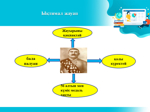 Үйге тапсырма: «Қажымұқан» повесінің кейіпкері – белгілі қазақ палуаны Қажымұқан Мұңайтпасовтың өмірі мен ерлік істері туралы зерттеу жүргізіңдер. |