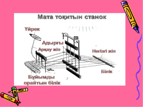 Негізгі сөздер мен тіркестер: талшық, арқау, негізгі жіп, пілә, қуршық |