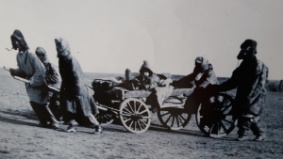 жасатамын. Оқушылармен берілген сурет бойынша диалог құру. Мына сурет қай жылдарға қатысты? Неліктен адамдар жол үстінде бейнеленген? Мұны немен түсіндіруге болады? Олар қайда кетіп барады? Бұл суреттегі ақпараттың құндылығы неде?