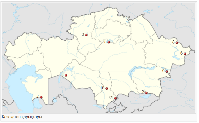 ҚБ: 3 балл Дескриптор: - Оқушылар картаға қорықтарды дұрыс орналастырады – 1 балл -Әр қорықтың орналасқан аймағын анықта және оның Қазақстандағы орнын түсіндіреді – 1 балл - Әрбір қорықтың негізгі ерекшеліктері туралы қысқаша, нақты ақпарат береді – 1 балл