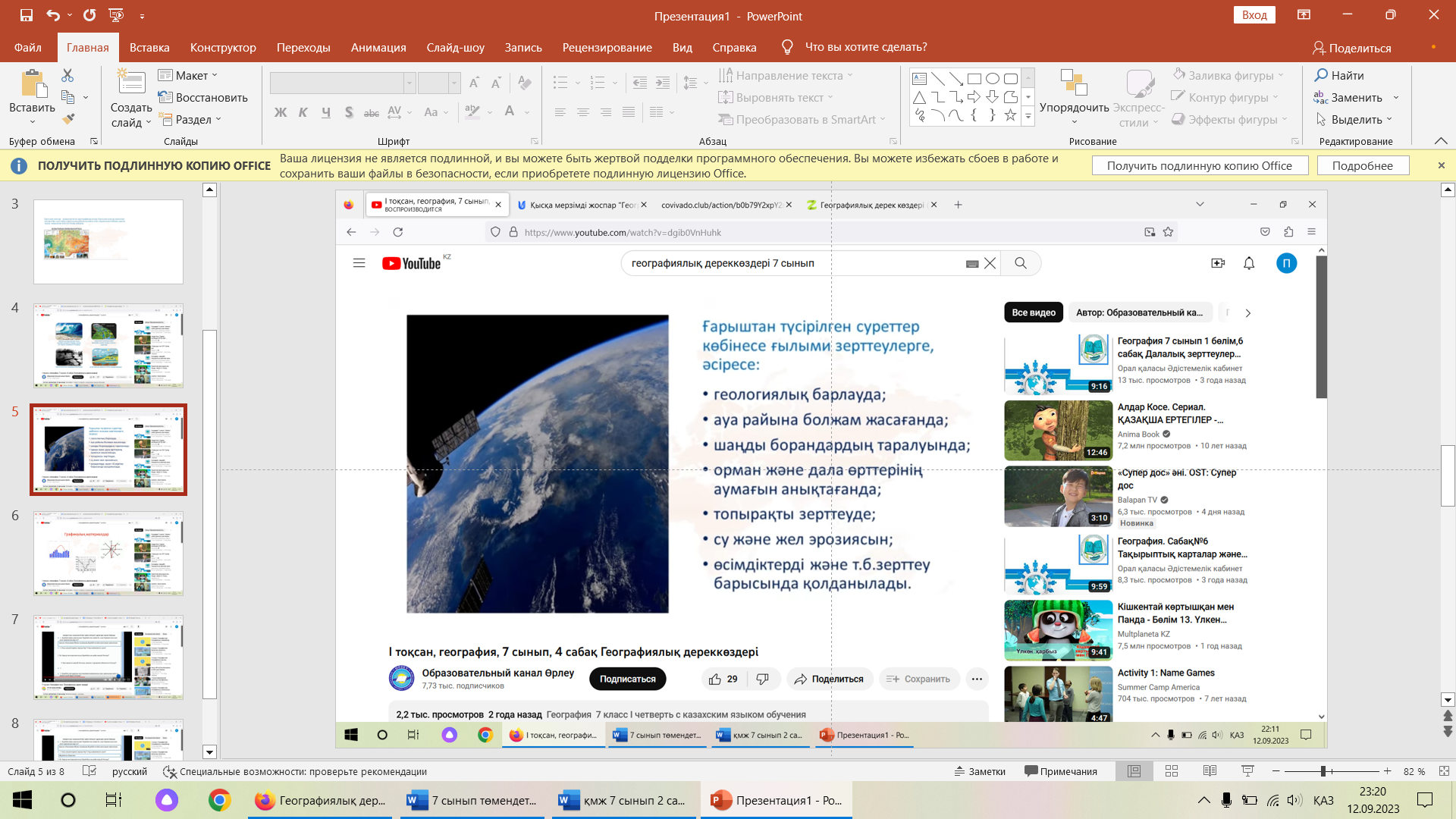 1-тапсырма: «Әлемдегі таңғажайып жерлер» атты бейне ролик көрсету оқушылар аэрофотосурет, карта, ғарыштық фотосуреттерді, бейнефильмді анықтайды