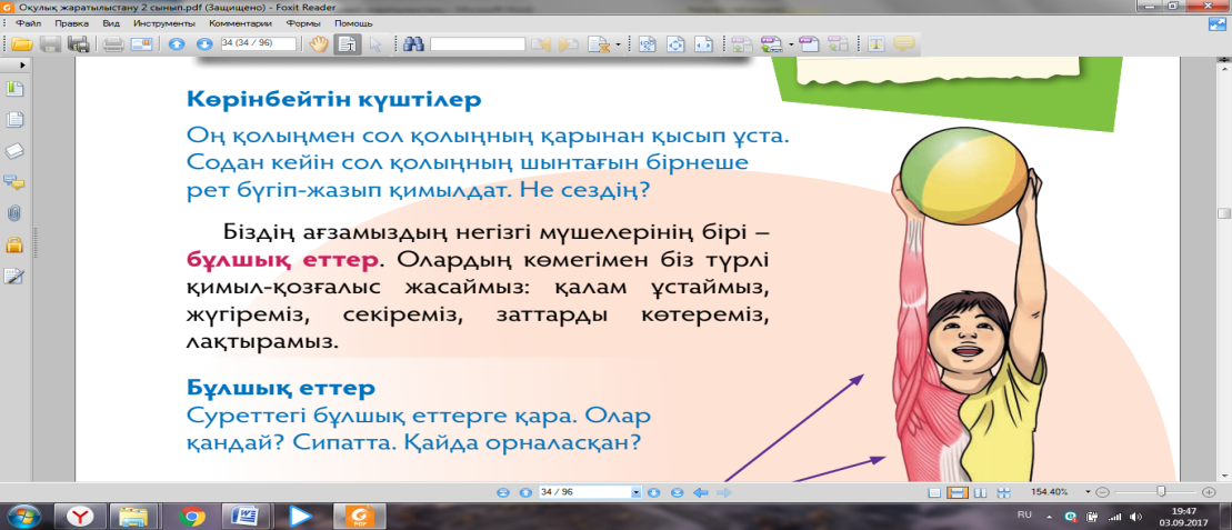 Қолдану 8 минут Постер жасату. Жалпыға арналған тапсырма: Оқушылар жаңа білімге сай оқулықты қолдана отырып өз түсінгендерін постерге түсіреді. Бұлшықеттер не үшін керек? |