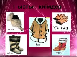 Балалар енді қысқы киімдерді атаңдаршы? "Қайсысы артық" Тақтаға әр мезгілдің киімдері ілінеді, осы киімдердің ішінен артық киімдерді табу керек. Табылған артық киімдерді қай мезгілде киетінін сұрау.