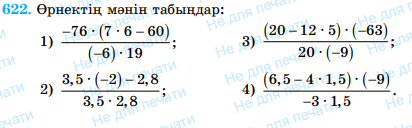 Дескриптор: -Рационал сандарды арифметикалық амалдар қолданып есептер шығарады. Дескриптор: -Таңбалар ережесін пайдаланып, өрнектің мәнін табады.