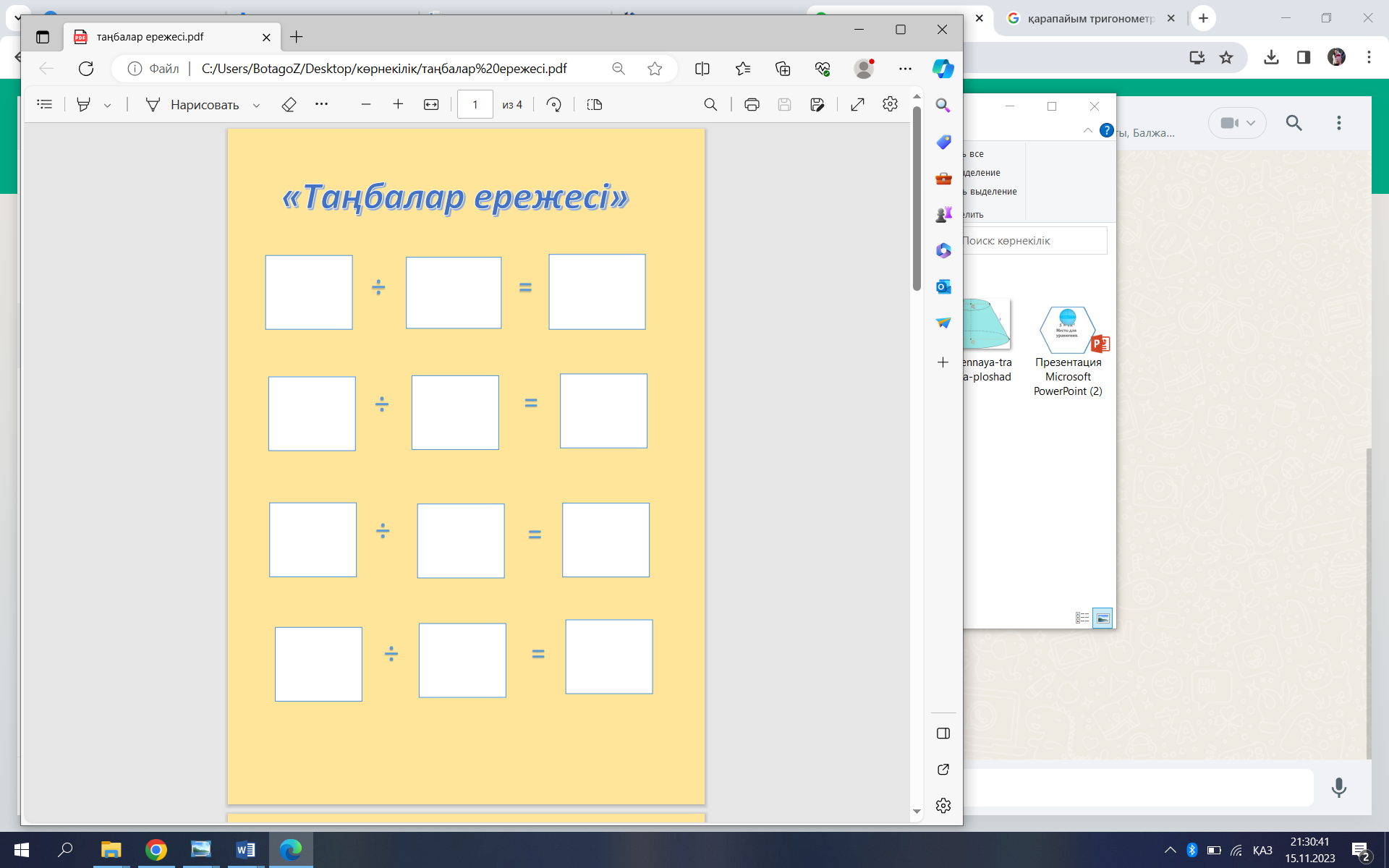 Топтық жұмыс. Таңбалар ережесін құрастыру. Жалпы жұмыс. Бөлуді орындаңдар. №645