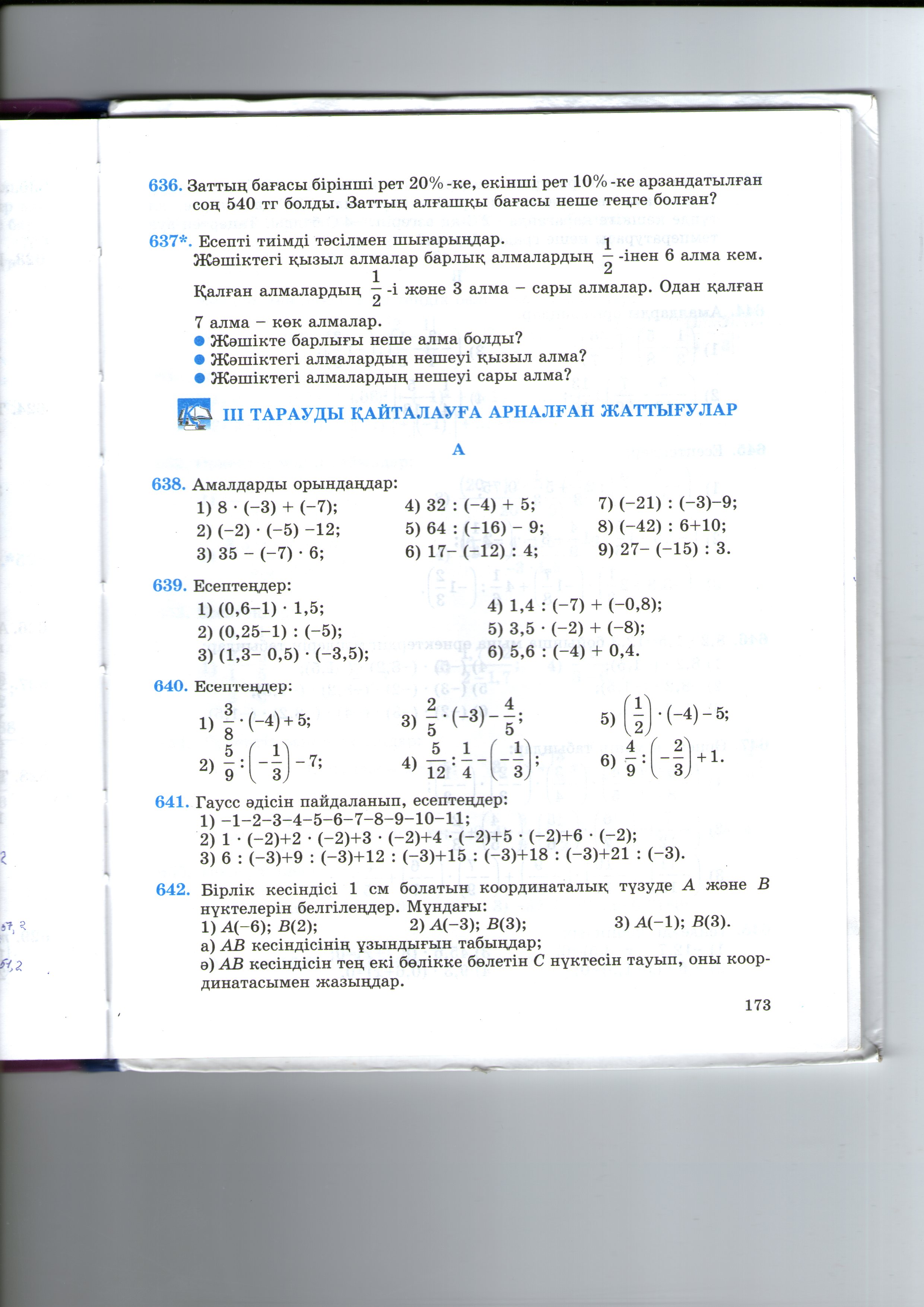 Жұппен жұмыстана отырып Ойлан, Бірік,Бөліс әдісін қолданып жұптасып орындайды II. Топтарға әр түрлі есептер беріледі (Слайд арқылы) (4мин) III. Тест тапсырмасын орындайды (5мин) Экран арқылы жауабын тексереді Сергіту сәті.(3мин) Айтылған дұрыс тұжырым болса қолдарын жоғары көтереді, ал қате болса, екі жаққа созады. Деңгейленген тапсырмалар беріледі, оқулықтан № 640; 648; 653 есептерді шығарады