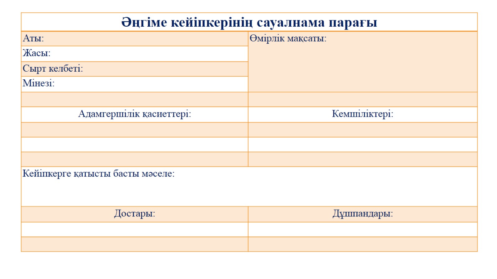7. 3. 1. 1. Кейіпкерлердің іс-әрекеті мен автор берген портреттік мінездемені салыстырып, тарихи және көркемдік құндылығына баға беру 7.1.2.1. Әдеби шығармадағы тұлғалық болмысты гуманистік тұрғыдан талдау
