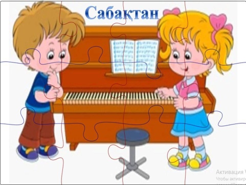 «Пазл» тәсілі бойынша пазлды жинақтай отырып, жаңа тақырыпты ашады, мақсатын айтады