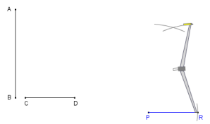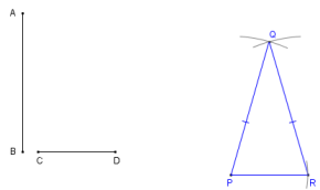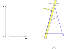 Тапсырма: Суретке қарап алгоритмін жаз. Табаны мен оған түсірілген биіктігі бойынша теңбүйірлі үшбұрыш салу Талдау: Табаны мен бір қабырғасы бойынша циркуль мен сызғышты пайдаланып теңбүйірлі үшбұрышты қалай салуға болады? Алдымен табанына тең кесінді салу арқылы екі төбесін саламыз, содан соң табаны мен оған түсірілген биіктігі бойынша теңбүйірлі үшбұрыш салынған деп қарастырайық. Онда табанына түсірілген биіктік табанының орта перпендикуляры болатынын көреміз және табанына қарсы төбесі табанының екі ұщынан бірдей бүйір қабырғасына тең қашықтықта орналасқанын ескеріп үшінші төбесін салуға болады