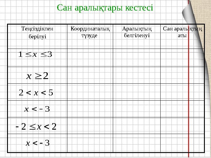 6.2.2.7 сан аралықтарын жазу үшін белгілеулерді пайдалану; 6.2.2.8 сан аралықтарды кескіндеу; |