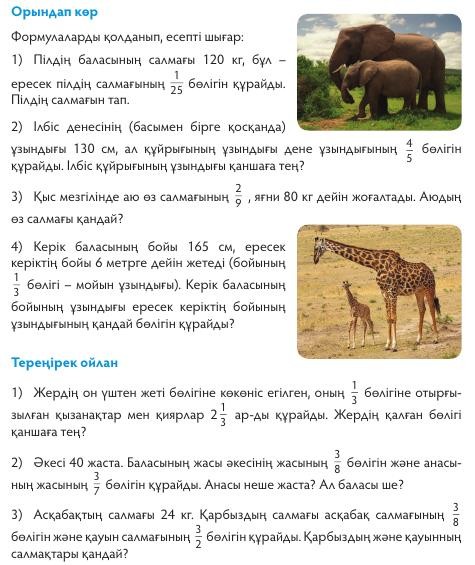 Санның бөлігін және бөлігі бойынша санды табуға берілген есептер |