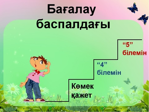 2.9. дыбыс пен әріпті тану және ажырату 1.7. Тыңдалған материал бойынша өз пікірін айту 2.1 Оқу түрлерін қолдану 3.10.Грамматикалық нормаларды сақтау 3.8 Каллиграфиялық нормаларды сақтау |