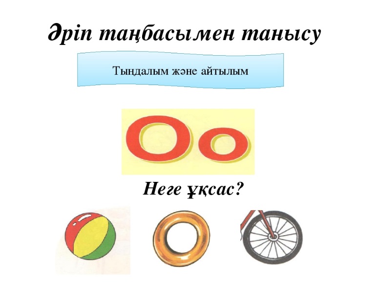 Оо дыбысының баспа және жазба түрлерімен, бас және кіші әріп таңбасымен таныстыру; 10 санын атау және он сөзіне дыбыстық талдау жасау. Дескритор: 1.Сөзде неше дыбыс барекенін біледі. 2.Дауысты, дауыссыз дыбыстарды ажыратады, анықтайды. 3.О дыбысы бар сөздерді атайды. 4.О дыбысының орналасу ретін біледі. 5.О дыбысы мен әрпін тану, ажырату және оны атайды, анықтайды. 2. Тыңдалым. Мәтінді аудио үнтаспадан тыңдау.Негізгі ойды анықтау үшін сұрақтар қойылады: