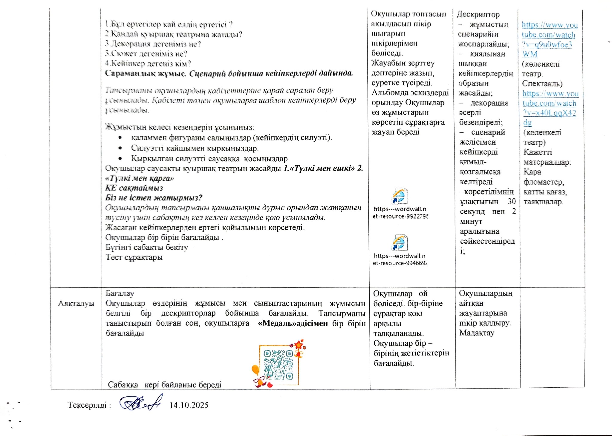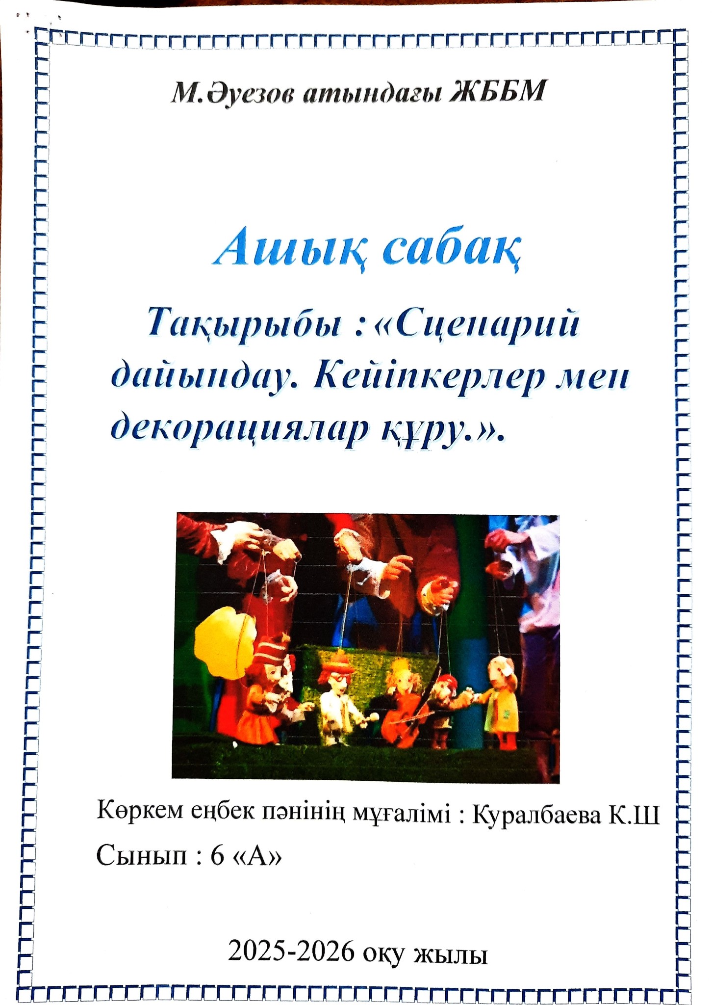 Ашық сабақ" Сценарий дайындау. Кейіпкерлер мен декорациялар құру.docx