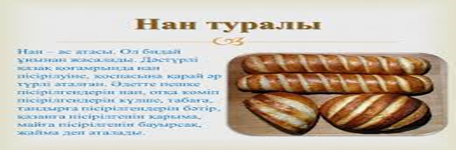 Мәтінді түсініп оқиды Нан қадірін түсінеді |