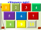 Психологиялық ахуал қалыптастыру –Мынау – менің жүрегім, Бәрі осыдан басталған. –Мынау – менің басым, Бәрін осы басқарған. –Мынау – менің оң қолым, Мынау – менің сол қолым, Барлық істі атқарған. Өткенді пысықтау «Балмұздақ таяқшалары» әдісі Сұрақтар