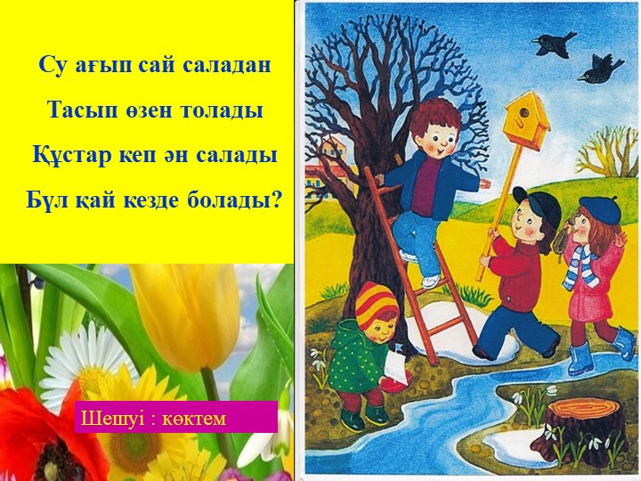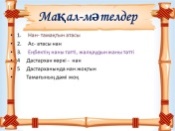 Дескриптор: Өлеңде жұмбақталған құсты табады Берілген сөздерден мақал құрастырады