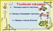 Дескриптор: Орны ауысқан сөздерден сөйлем құрайды Сөйлемдерді қатесіз көшіріп жазады Сұрақтарға жауап береді Дескриптор: Жетекші сұрақтарға жауап береді Сұрақтар арқылы ереже құрастырады