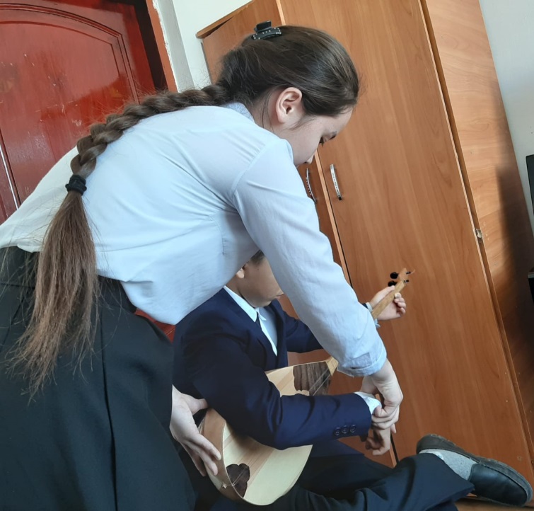 Екі ішекке саусақтарды тигізіп, дыбыстың сапалы шығуына дербес көңіл бөлу.