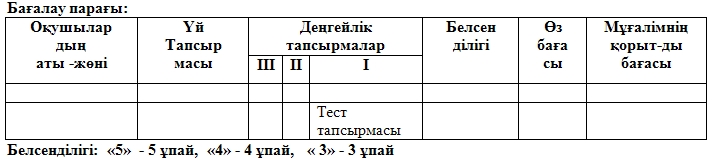 — Оқушы еңбек жасап, іздене отырып, өз жұмысына өзі баға