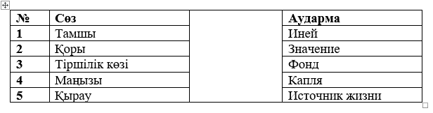 С оқушы: Жаңа сөздерді екі тілдегі аудармамен сәйкестендіреді.