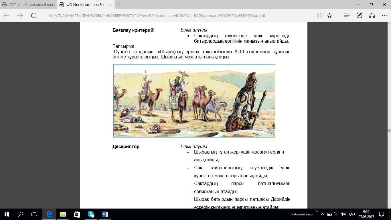 Оқулықпен жұмыс. Қазақстан тарихы 5 сыныбына арналған оқулық С.Р.Ахметова т.б.- Астана « Назарбаев зияткерлік мектептері ДББҰ, 2017»