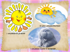 (амандасады) Ширату тапсырмасы Оқылған материал бойынша оқушыларға сұрақ қояды: «Ақ сүйек ойыны» 1. Ауа дегеніміз не ? 2. Ауаның қасиеттерін атап бер? 3. Су табиғатта қайда және қандай күйде кездеседі? 4. Ауаның ластануы дегеніміз не? 5 .Желдің қандай пайдасы бар 6.Желдің қандай зияны бар? Ұ.Ж: «Болжау» әдісі -Суреттегі заттардың атауын атайды |
