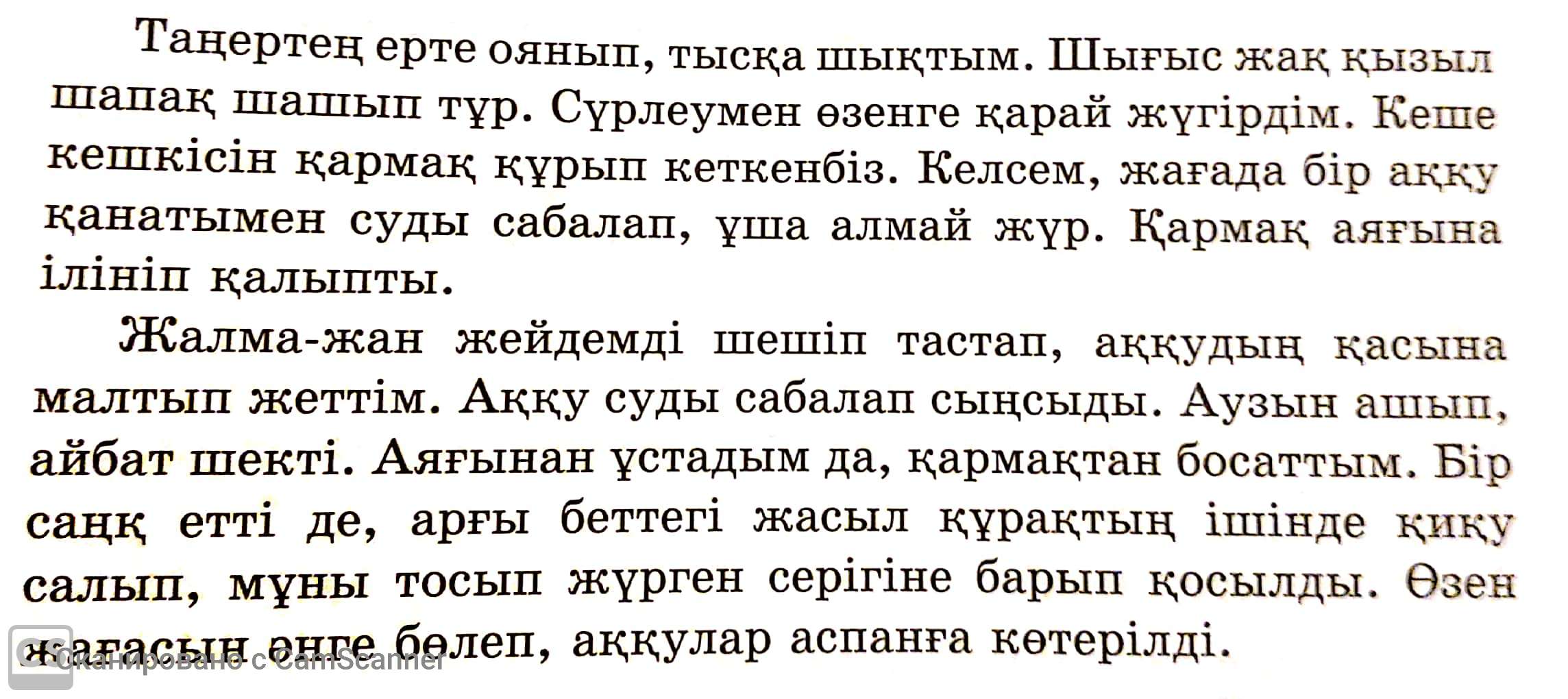 «Орындап көр» 52 жаттығу. Сөйлемдерді көшіріп жаз. Халық аққуды “киелі құс” деп есептейді. 2. Аққуды қармақтан босаттым. 3. Аққулар өзен жағасын әнге бөледі. аққуды сөзіне қандай сұрақ қойылады? аққуды –нені? «Бір минуттық жазба»