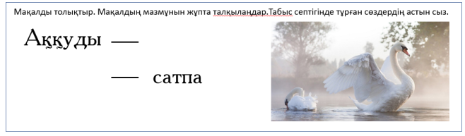 қатысады. -Мәтіндегі аққу сөзін үш