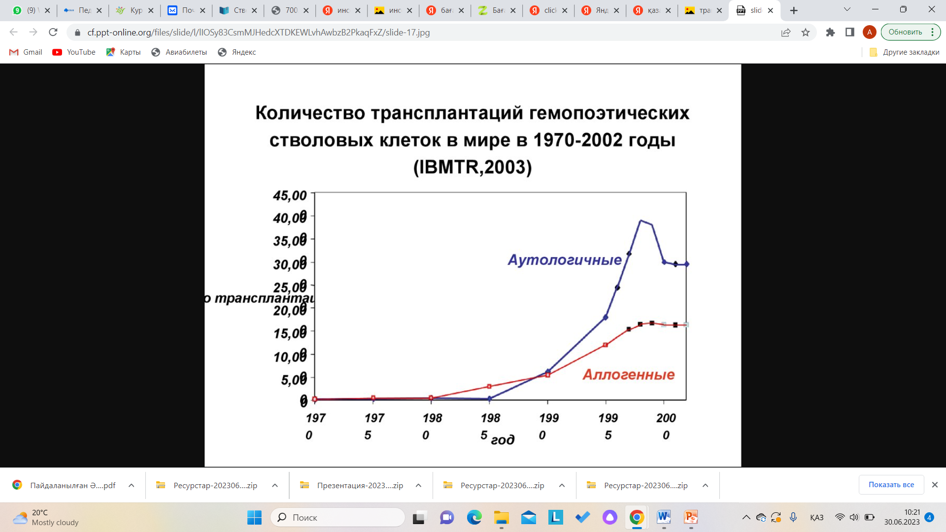 Үй тапсырмасы: Графикті сөйлету. «1970-2002 жылдар аралығында гемоэтикалық бағаналы жасушалардың трансплантациясы». Графикті қолдана отырып, аутогенді және аллогенді жасушаларды қалпына келтіру әдістерінің әр түрлі көрсеткіште болуын түсіндіріңіздер.