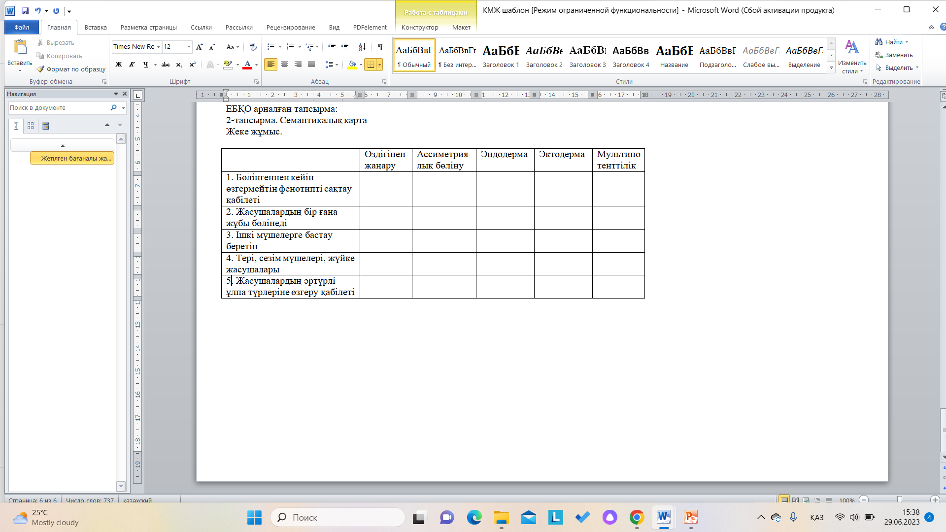 ЕБҚО арналған тапсырма: Семантикалық карта. Кестедегі ұғымдар мен анықтамаларын сәкестендіріңіз.