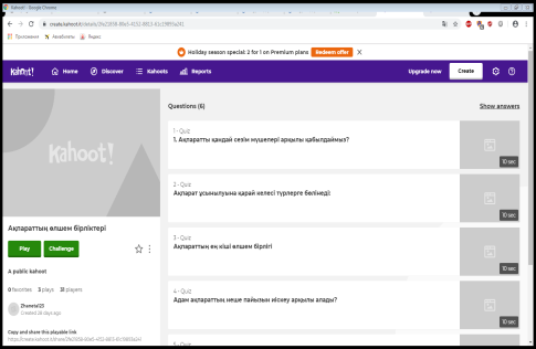 Бағалау түрі: Дұрыс жауап берген оқушыға 5 байт бірлік беріледі. Сабақты бекіту. Жеке жұмыс. Kahoot.com