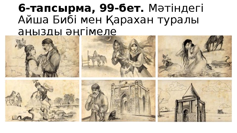 Дескриптор: -мәтін бөліктерімен жұмыс жасайды, мәтіннің негізгі мазмұнын түсінеді; -мәтін бөліктерін суреттермен дұрыс сәйкестендіреді; - өз көзқарасын, пікірін жеткізеді; -аңызды сипаттай біледі;