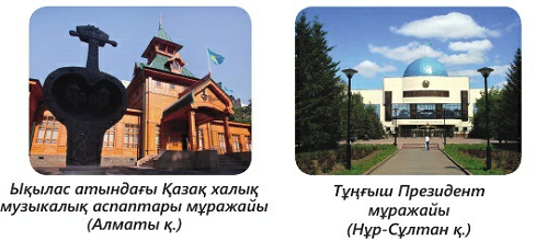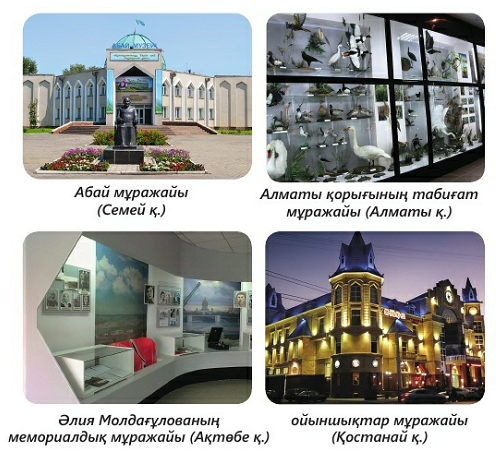 3- тапсырма. Суреттегі мұражайларға қандай экспонаттар қойылатынын айтып бер.