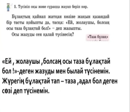 «Таза бұлақ» мәтіні бойынша тапсырмалар