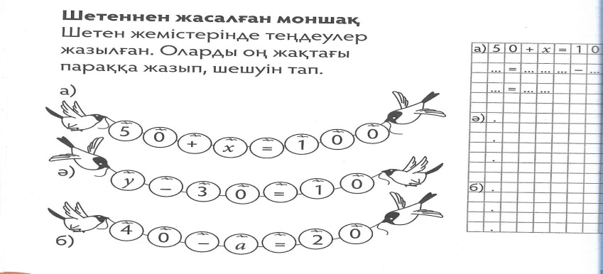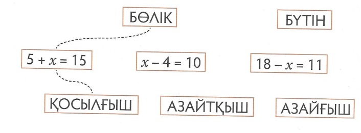 №1 тапсырма. Ұжымдық жұмыс сурет бойынша теңдеу құрастыр және оны шеш.
