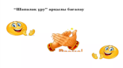 Бағалау әдістері: «Қолпаштау» әдісі Мұғaлiмнiң қолпаштауы «Жapaйcыңдap!», «Тaмaшa!», «Керемет!» «Сәнді жұлдыздар» Жақсы- сары жұлдыз Жарадың –қызыл жұлдыз Ақылдым- жасыл жұлдыз «Бacбapмaқ»әдici apқылы бір-бірін бaғaлaйды. «Сиқырлы қарындаштар» «Қол шапалақтау» әдісі "Смайликтер "әдісі Өз-өзін бағалау парағы Рефлексия: «Блоб ағашы» -Ағаштың басына еш қиындықсыз жеттім. -Ағаш басына достарымның көмегімен шықтым. - Ағаш басына шығу үшін әлі жұмыстануым керек.