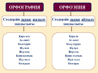 5.3.1.1 берілген мәтінге сәйкес кіріспе, негізгі және қорытынды бөлімдерді қамтитын қарапайым жоспар құру; 5.4.1.1 қазақ тілінің дыбыстар жүйесін, үндестік заңын, емлелік ерекшеліктерін ескере отырып, орфографиялық нормаға сай жазу; |