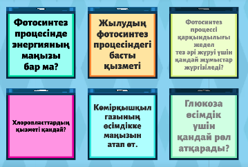 (ЖТ) Жеке тапсырма Оқушылар фотосинтезге қатысты ситуациялық сұрақтар қояды