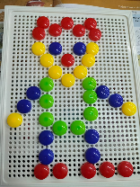 2-тапсырма Оқулықтағы 2-тапсырманы өз бетімен орындайды. Бөлшектердің орналасу заңдылығын анықтайды, оны жалғастырады. Мұғалім оқушыларға мозайка тақтасына өзінің тізбегін құрастыруды ұсынады.